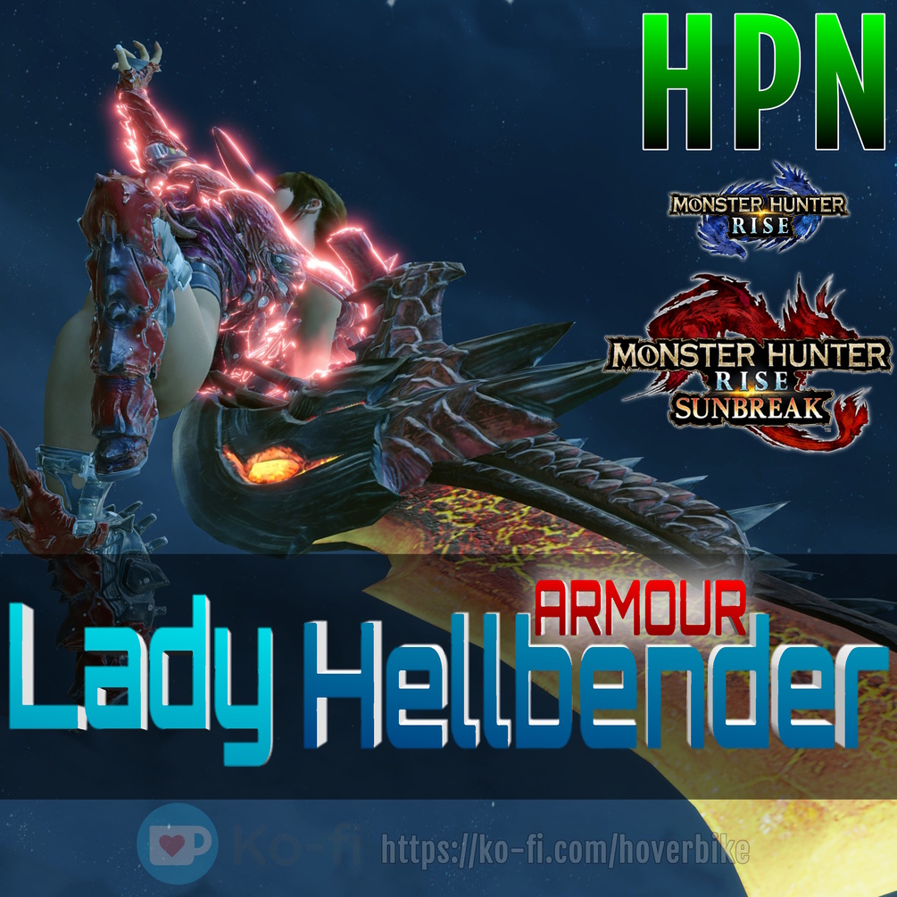 Lady Hellbender's armour working in MHRise with Fluffy manager 5000.
